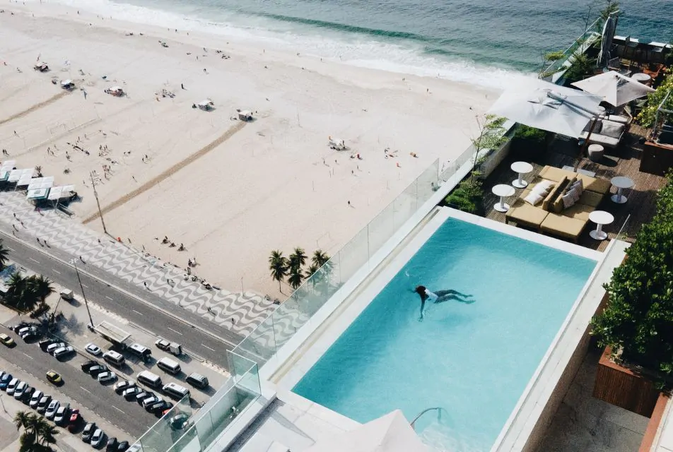 Para relaxar à beira da piscina e jantar apreciando a vista da Praia de Copacabana, é possível aproveitar as opções do cardápio à beira da piscina.