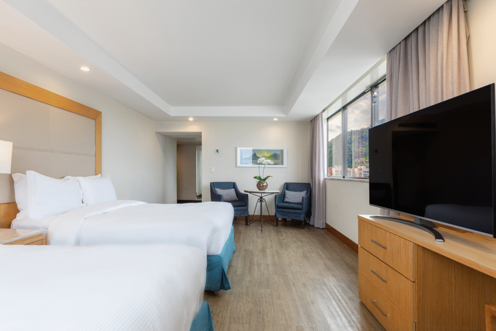Com 545 acomodações cuidadosamente projetadas, o Hilton Copacabana reúne funcionalidade, estilo e serviços pensados para diferentes tipos de viajantes: dos que vêm a trabalho aos que buscam descanso à beira-mar. Todos os quartos oferecem: