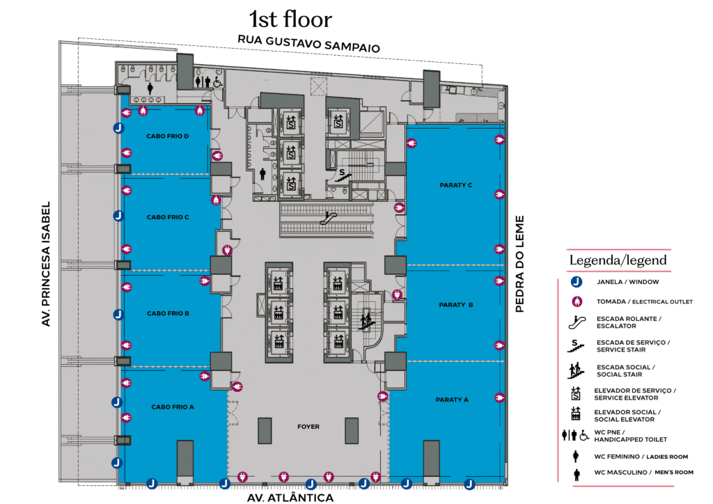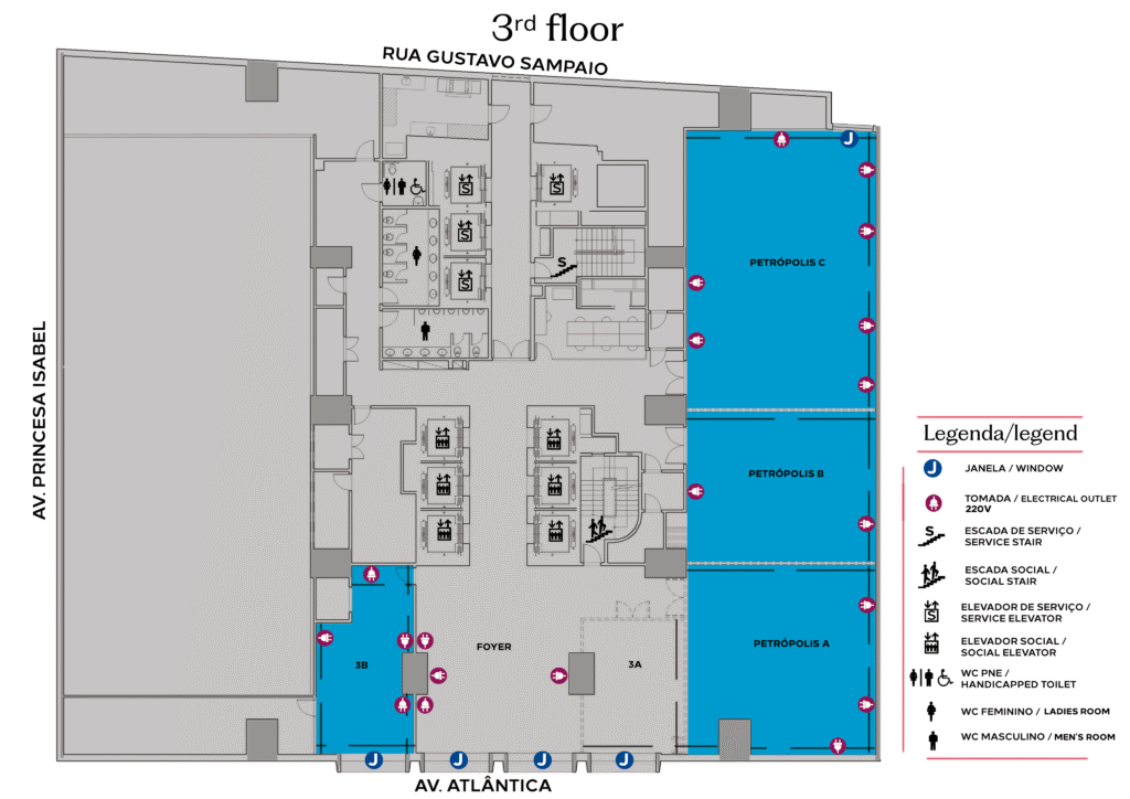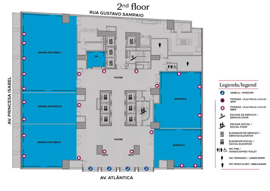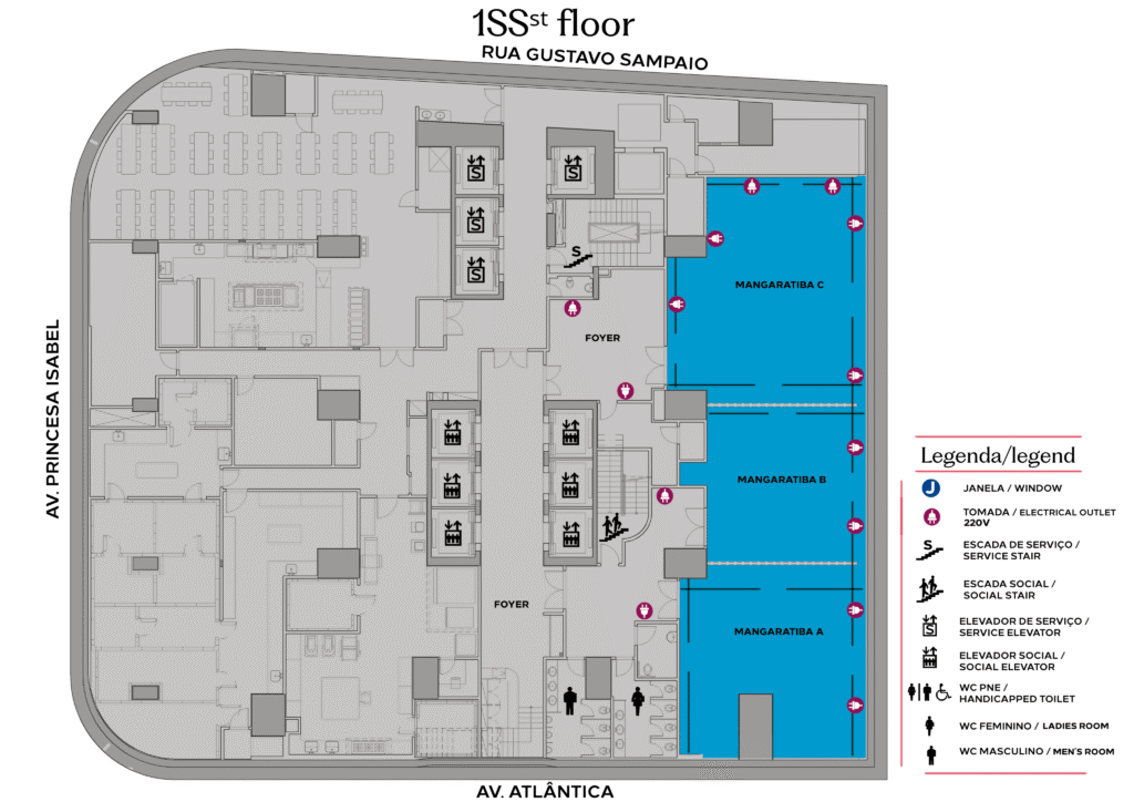 Com mais de 2.900 m² dedicados a eventos, oferecemos salão de eventos em Copacabana, ambientes moduláveis e serviços personalizados para cada necessidade. São 36 espaços, prontos para receber desde um aluguel de sala de reunião RJ até uma grande convenção, com: